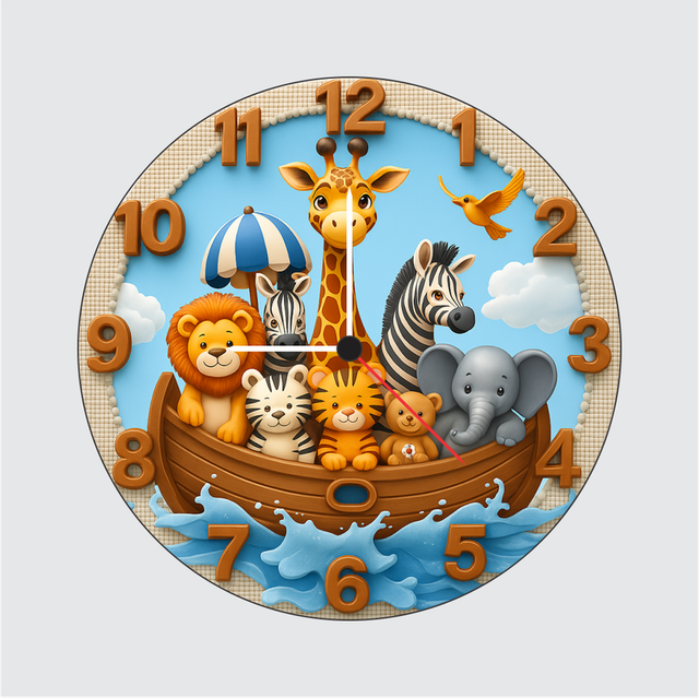 TERA MERA GIFT 3D Wooden Animal Boat Wall Clock 12 Inch Round Clock – Fun Jungle Animal Theme for Kids Bedroom Nursery and Playroom Decor