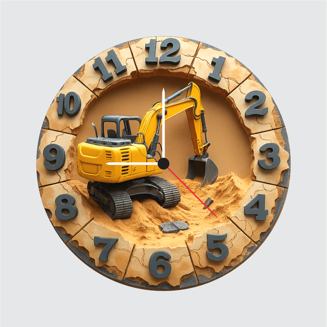 TERA MERA GIFT Excavator Wall Clock 12 Inch – Construction Theme 3D Kids Room Clock for Bedroom, Playroom & Gifting
