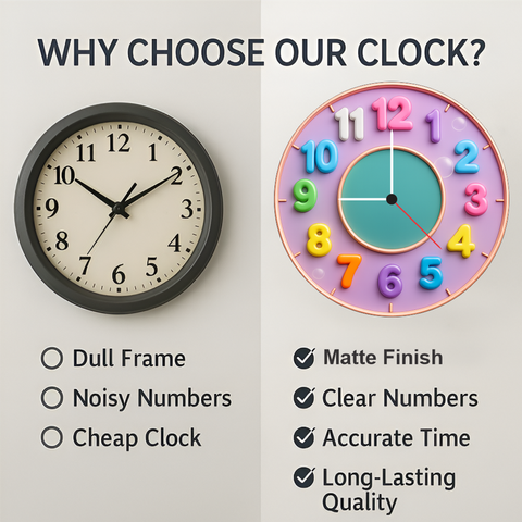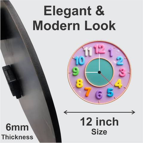 Smooth ticking mechanism provides accurate time without disturbing noise. - 5MM THICK STRUCTURE: stable and safe for kids’ rooms