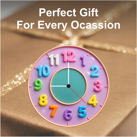 TERA MERA GIFT 12 Inch MDF Kids Wall Clock Colourful Numbers Design Silent Quartz Clock for Children Bedroom Playroom Study
