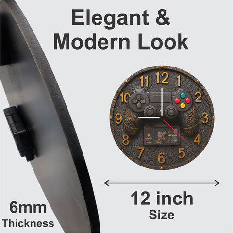 Bring personality to your space with this gaming themed 12 inch wall clock made from premium MDF. The matte finish and detailed controller design make it a standout decor piece in any room. Its silent quartz movement ensures accurate timekeeping with zero disturbance while the 5mm thick board provides strength and durability. Perfect for gifting on special occasions or enhancing your living room bedroom or gaming setup.