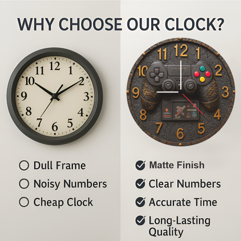 • GAMING INSPIRED DESIGN Adds character to any room with a unique controller themed clock made for gamers.