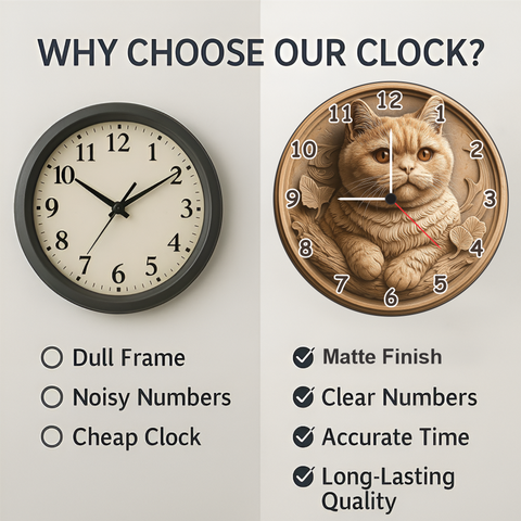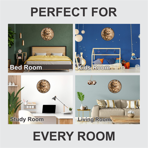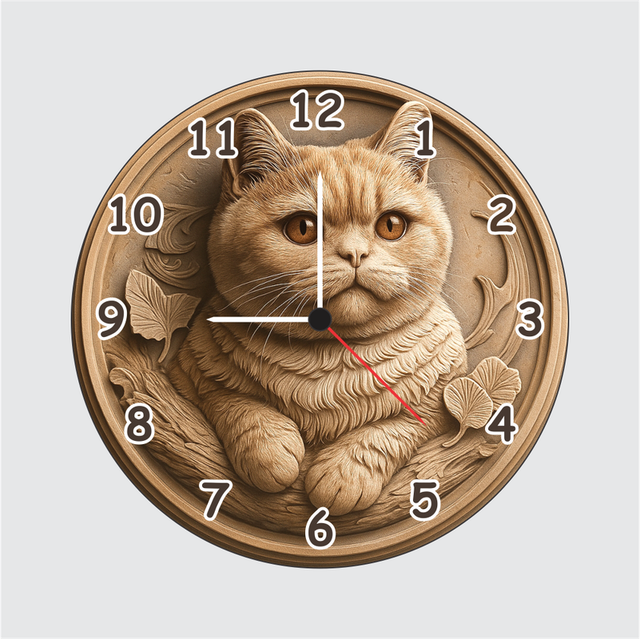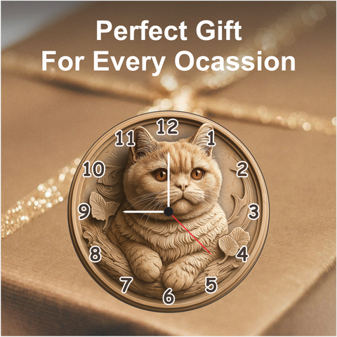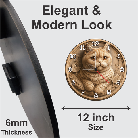 TERA MERA GIFT 3D Cat Theme Wooden Wall Clock blends art and affection in one masterpiece. Designed with intricate cat carving and fine detailing, it enhances any space with sophistication. Crafted from durable MDF wood and given a matte finish, this 12-inch clock is both stylish and long-lasting. Featuring a silent quartz mechanism, it provides accurate timing without any ticking sound. Perfect for gifting or decorating elegant spaces.