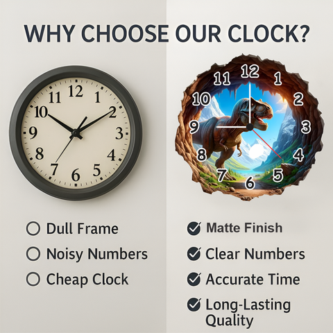 Add excitement and style to your kids bedroom or playroom with this adventurous 3D dinosaur wall clock. Its vivid design, durable finish, and silent operation make it a perfect birthday or return gift for young dinosaur fans.