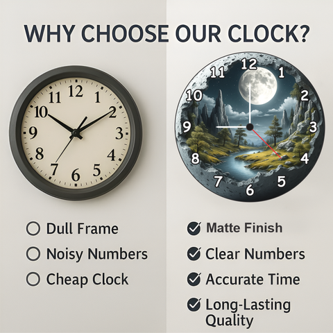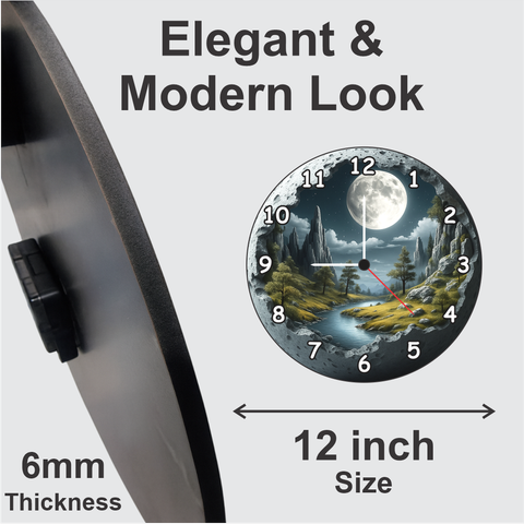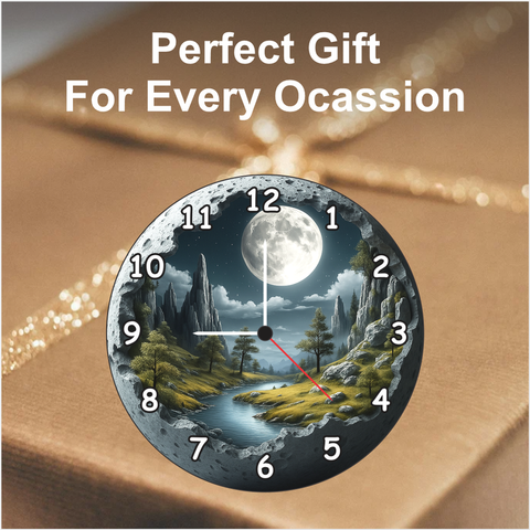 Experience the beauty of the moon every day with this 3D Moon Scene Wooden Wall Clock by TERA MERA GIFT. The design features a glowing moon over mountains and river giving your home a calm and creative feel. Made from strong MDF wood with matte finishing it remains elegant for years. The quartz mechanism offers accurate timing with low sound. Ideal for bedrooms living rooms or study spaces this clock adds class and character. It’s also a perfect gift for anyone who loves modern yet nature inspired art pieces.