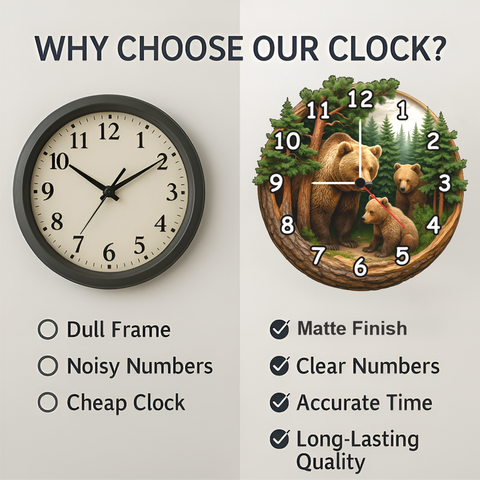 - Cute 3D bear family design makes this clock look real and adds a warm natural feeling to your wall perfect for nature and art lovers.
