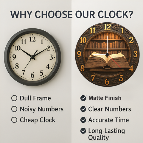 The TERA MERA GIFT 3D Wooden Book Theme Wall Clock blends literature and art beautifully. With its detailed bookshelf and open book design, it’s an ideal décor choice for intellectual spaces. Built from strong MDF wood and finished in matte polish, it’s both stylish and durable. Its silent quartz mechanism provides smooth, accurate time without noise. A perfect addition to libraries, offices, and study rooms — where creativity meets elegance.