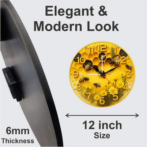 TERA MERA GIFT 3D Wooden Bee Wall Clock 12 Inch Round Clock – Fun Cartoon Design for Kids Room & Living Space Decor