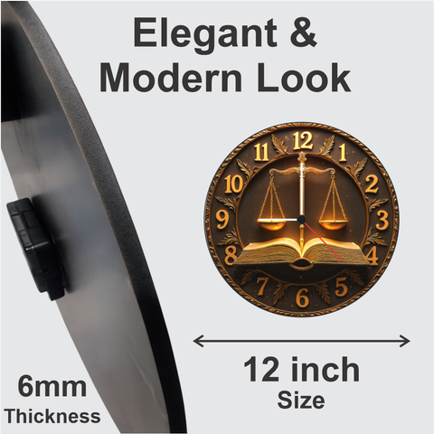 TERA MERA GIFT 3D Wooden Justice Wall Clock 12 Inch Round Clock – Legal Theme Decor for Lawyer Chamber Office and Study Room