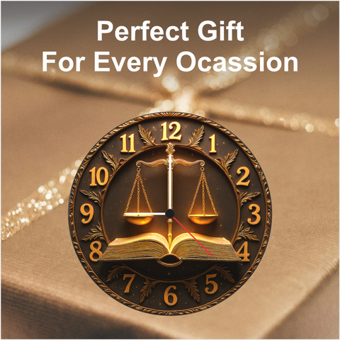Celebrate justice and learning with the 3D Wooden Justice Wall Clock by TERA MERA GIFT. Featuring an open book and golden scales, this artistic timepiece is perfect for advocates, law offices, and classrooms. Crafted from MDF wood with matte finish, it brings sophistication and purpose to your wall decor. The quartz system ensures accurate time and quiet operation. A meaningful gift choice that combines professionalism with elegance for those in the field of law.