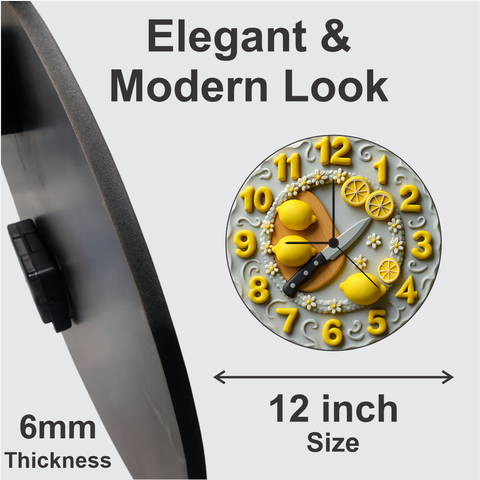 TERA MERA GIFT 3D Wooden Lemon Chef Wall Clock 12 Inch Round Clock – Fruit Theme Kitchen and Dining Room Wall Decor