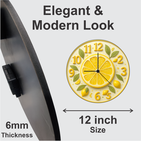 TERA MERA GIFT 3D Wooden Lemon Wall Clock 12 Inch Round Clock – Citrus Fruit Design Kitchen Decor for Home and Café