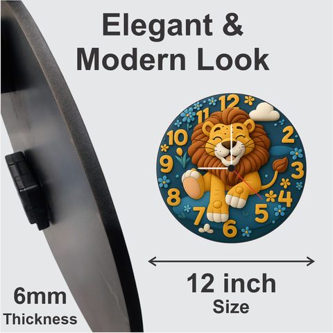 TERA MERA GIFT 3D Wooden Lion Wall Clock 12 Inch Round Clock – Fun Animal Design for Kids Room Nursery and Baby Bedroom Decor