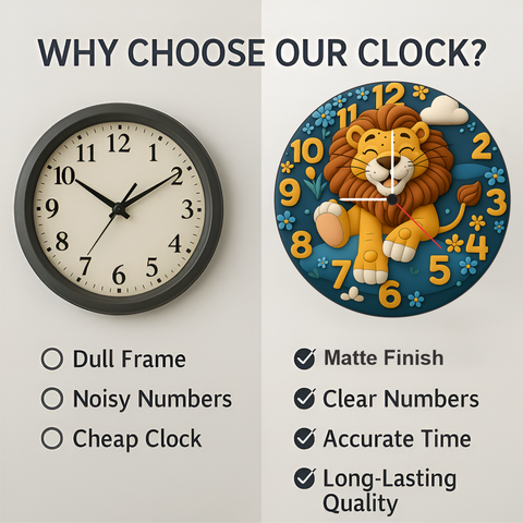 Be the first to review “TERA MERA GIFT 3D Wooden Lion Wall Clock 12 Inch Round Clock – Fun Animal Design for Kids Room Nursery and Baby Bedroom Decor” Cancel reply