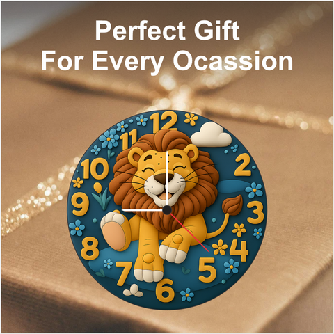 Add joy and creativity to your child’s wall with this 3D Wooden Lion Wall Clock by TERA MERA GIFT. Featuring a happy lion with flowers and clouds this clock turns your kids room into a cheerful and colorful space. Made with durable MDF wood and matte finish it combines safety and beauty. The quartz machine ensures accurate time with a soft sound that’s ideal for study or nap time. Perfect for bedrooms nurseries or playrooms it’s also a charming gift for children and young parents who appreciate playful decor.