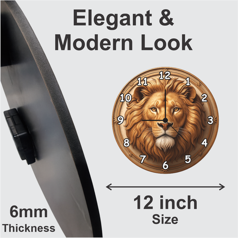 TERA MERA GIFT 3D Wooden Lion Wall Clock 12 Inch Round Clock – Royal Animal Design for Living Room & Home Decoration