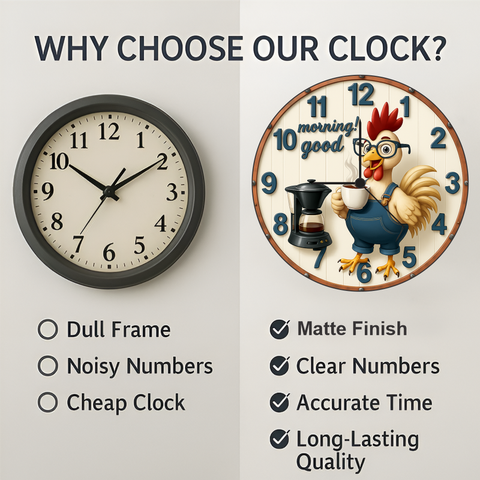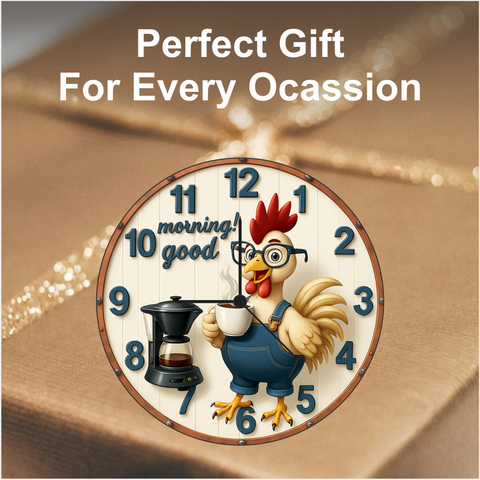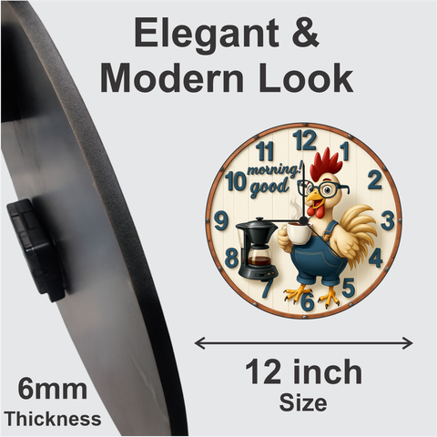 Add laughter and creativity to your walls with this 3D Wooden Rooster Wall Clock by TERA MERA GIFT. The cheerful rooster holding a coffee mug makes it a perfect addition to kitchens cafés or dining spaces. Made from strong MDF wood with a matte finish it blends style and quality. The quartz mechanism provides accurate timing with a soft sound for peaceful mornings. A beautiful and fun gift choice for those who love coffee inspired wall decor and unique designs.