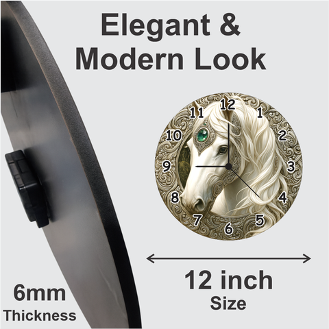 TERA MERA GIFT 3D Wooden Royal Horse Wall Clock 12 Inch Round Clock – Elegant Art Design for Living Room & Bedroom Decor