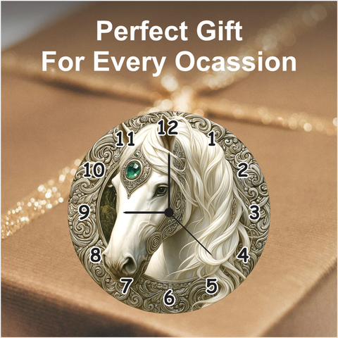 TERA MERA GIFT 3D Wooden Royal Horse Wall Clock reflects timeless elegance. Featuring a detailed horse design with ornamental artwork, this 12-inch MDF clock adds a royal touch to any decor. With its silent quartz mechanism and durable build, it’s the perfect blend of art and accuracy for living spaces or gifts.