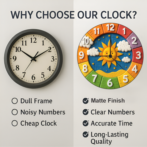 Be the first to review “TERA MERA GIFT 3D Wooden Sun Wall Clock 12 Inch Round Clock – Colorful Kids Room Wall Decor with Clouds and Star Design” Cancel reply