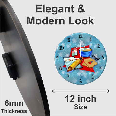 TERA MERA GIFT | Baking Essentials Wall Clock | 12 Inch | 6mm MDF | Matte Finish | Kitchen Theme Wall Clock for Home Decor
