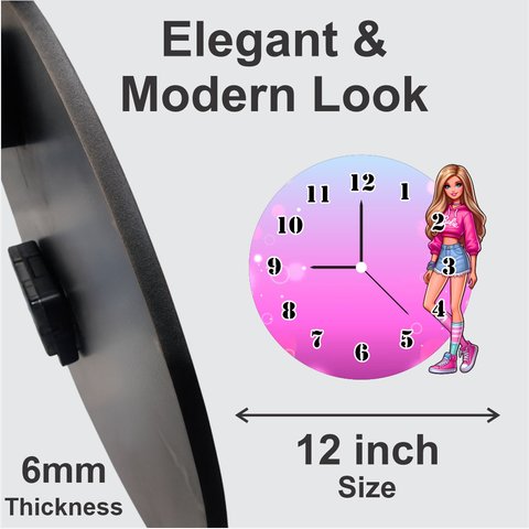 TERA MERA GIFT | Barbie Pink Wall Clock 12 Inch | 6mm MDF Matte Finish | Trendy Room Decor for Girls and Kids