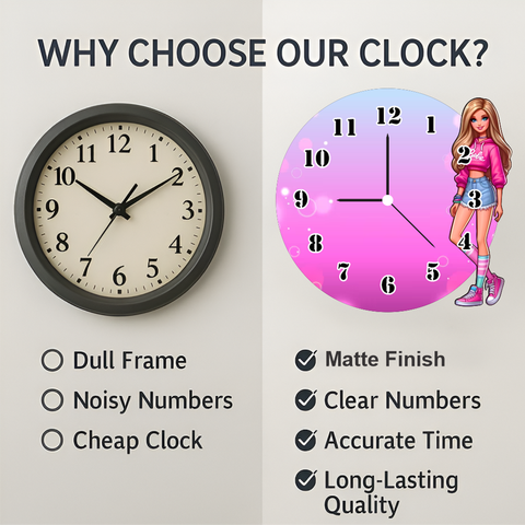 Be the first to review “TERA MERA GIFT | Barbie Pink Wall Clock 12 Inch | 6mm MDF Matte Finish | Trendy Room Decor for Girls and Kids” Cancel reply