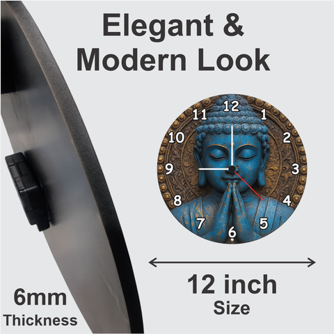 TERA MERA GIFT Blue Buddha Wall Clock 12 Inch Spiritual Home Decor Meditation Theme Gift Clock