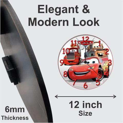 TERA MERA GIFT | Cars Cartoon Wall Clock | 12 Inch | 6mm MDF | Matte Finish | Lightning Car Design for Boys Room & Home Decor