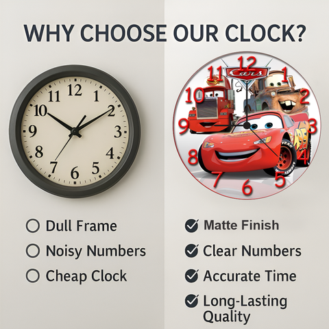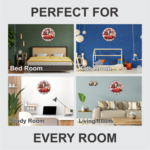 - Colorful cartoon car theme clock that adds excitement to any child’s bedroom or play area.