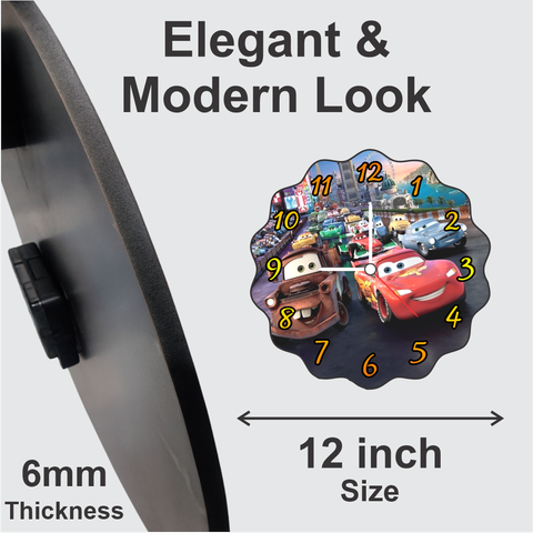 TERA MERA GIFT | Cartoon Cars Wall Clock 12 Inch | 6mm MDF Matte Finish | Fun Racing Theme Kids Room Wall Clock
