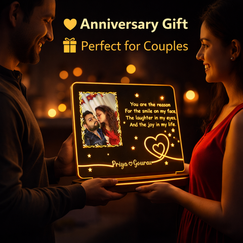 TERA MERA GIFT Custom Photo Acrylic LED Lamp with Wooden Base Personalized Name Memory Light for Couples Romantic Room Decor Gift for Anniversary Birthday Valentines Day