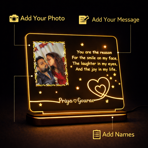 - High quality transparent acrylic with glossy finish gives crystal clear photo visibility while soft LED light highlights emotions beautifully, making every moment feel special and memorable daily.