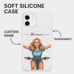 TERA MERA GIFT Soft Silicone Transparent Custom Name Phone Case for Oppo Vivo Redmi Realme Poco OnePlus Nothing Motorola Samsung iPhone with Stylish Girl Design