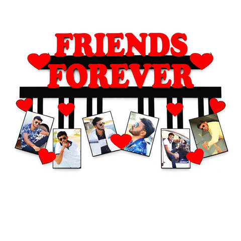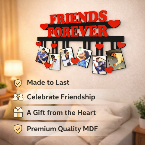Personalized MDF friends forever photo frame with multiple photo slots and bold friendship text. Premium matte finish vinyl print makes it a perfect wall decor and memory gift