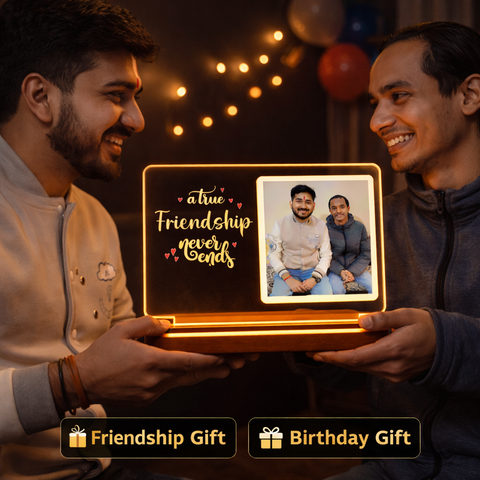 TERA MERA GIFT Customized Friendship LED Acrylic Photo Lamp with Wooden Light Base