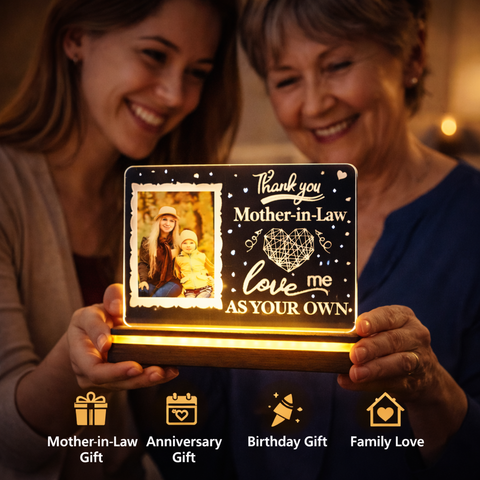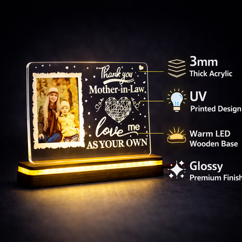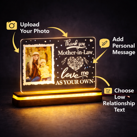 TERA MERA GIFT Customized Photo LED Acrylic Lamp Mother in Law Thank You Message Wooden Base Premium Personalized Night Light Home Decor Gift