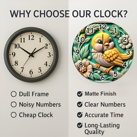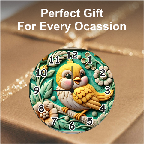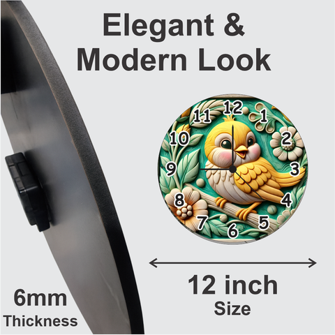 Brighten your walls with this Cute Bird Wall Clock, designed with playful details and natural tones. Crafted from 6mm MDF and powered by a precise quartz machine, this 12-inch clock adds charm to bedrooms, study spaces, and kids’ rooms. Its lightweight and durable design ensures easy wall mounting and long-lasting appeal—perfect for gifting or home Decor.