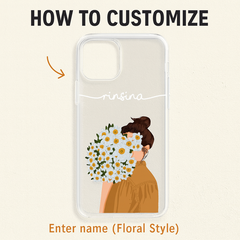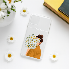 A charming and elegant phone cover designed for girls who love soft floral aesthetics. Featuring a cute daisy bouquet girl illustration with customizable name printing, the case blends beauty with durability. The soft shockproof TPU ensures daily protection while enhancing your style during travel, office hours or gifting moments. A perfect blend of cuteness and protection.