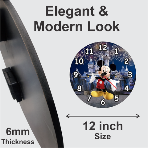 - Cute Mickey Mouse Wall Clock | 12 Inch | 6mm MDF | Quartz Movement | Kids Room Wall Decor | Cartoon Theme Decorative Clock
