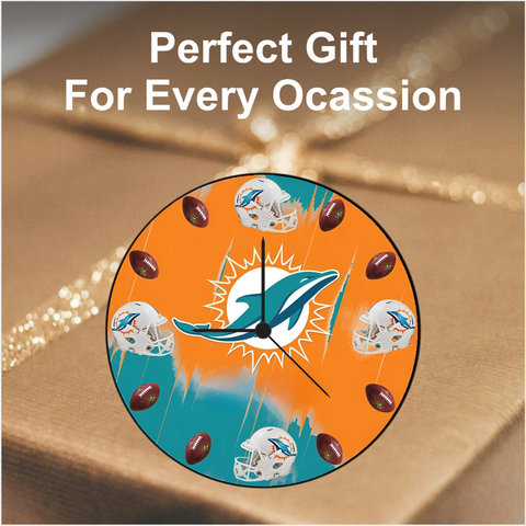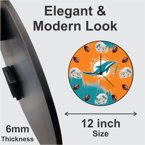 TERA MERA GIFT | Dolphin Sports Wall Clock 12 Inch | 6mm MDF Matte Finish | Orange and Blue Football Design Wall Clock for Home & Office