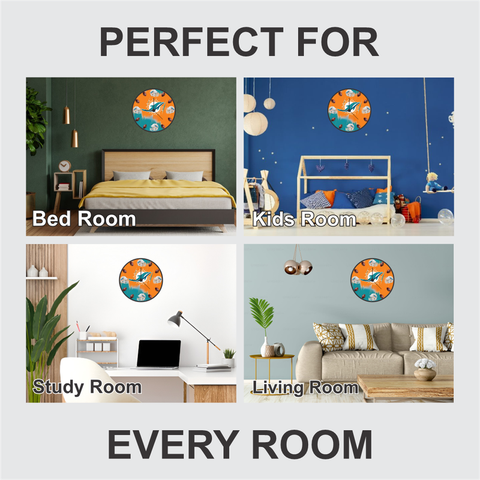 Dolphin Sports Wall Clock brings a fresh, colorful energy to your interiors. Featuring a vibrant orange and blue design, it’s crafted from 6mm MDF with matte finish for durability and elegance.