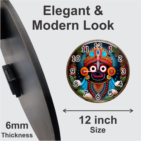 TERA MERA GIFT | Elegant Jagannath Wall Clock for Home Decor | 12 Inch | 6mm MDF | Quartz Movement | Spiritual Wall Clock for Bedroom & Office