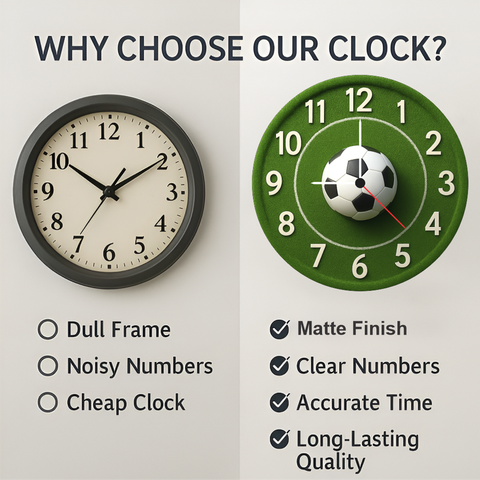 This football-themed wall clock brings energetic stadium vibes right into a child’s room. With its raised turf design and bold centerpiece ball, it excites young sports lovers while helping them manage time effectively. A perfect gift for birthdays, sports enthusiasts, or room décor upgrades.