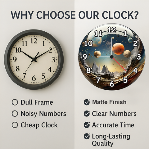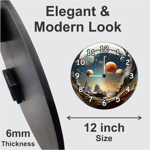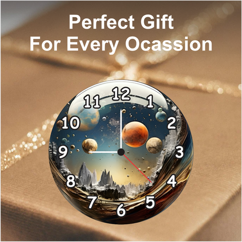 • Decorative galaxy design clock with vivid planetary artwork perfect for adding a cosmic touch.