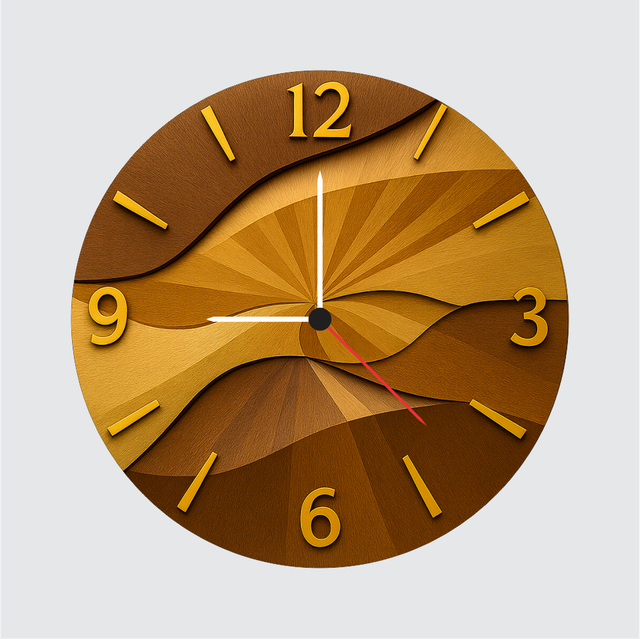 Give your walls a luxurious upgrade with our Golden Wave Art Wall Clock, featuring a flowing wooden texture in rich blended tones. Its premium 6mm matte finish board ensures durability while offering a refined feel. The golden hour markers add a classy visual appeal suitable for living rooms, offices, bedrooms and modern décor themes. Powered by a reliable quartz movement, it ensures accurate time throughout the day. A beautiful décor piece and a thoughtful gift for housewarming, birthdays and festive occasions.