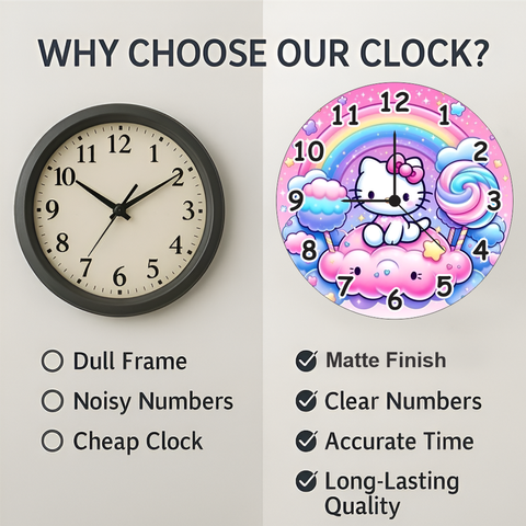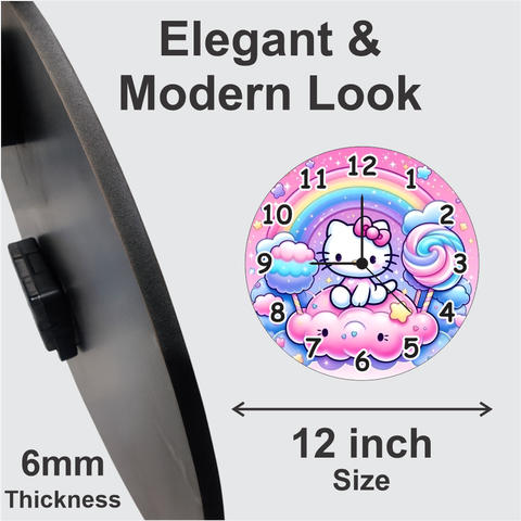 TERA MERA GIFT | Hello Kitty Wall Clock | Adorable Pink Rainbow Design for Girls Room or Play Area