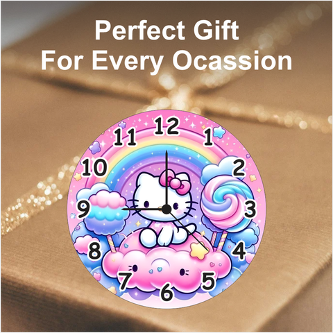 Brighten your space with this Hello Kitty Wall Clock featuring a colorful rainbow theme and durable design. Its silent quartz movement and modern finish make it perfect for kids’ rooms, nurseries, or as a cheerful gift.