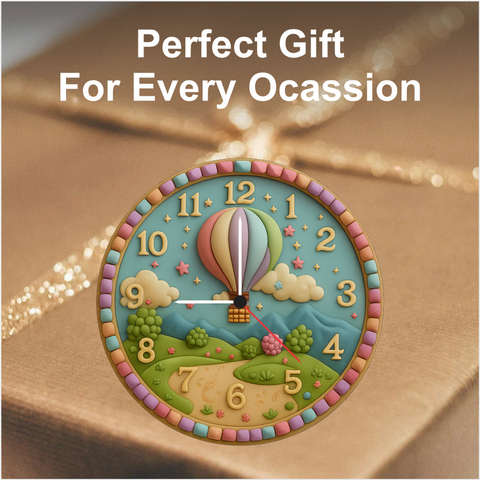 Make your child’s room magical with our Hot Air Balloon Kids Wall Clock, designed in soothing pastel shades and playful cartoon artwork. Built with a strong 6mm matte board, this clock remains durable and safe for kids’ spaces. The colourful numbers help little ones learn to read time easily, while the smooth quartz movement ensures accurate timekeeping daily. A perfect décor piece for nurseries, study rooms and play areas, it also makes a wonderful birthday or festive gift for children.