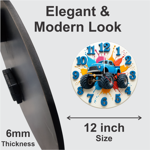 TERA MERA GIFT Monster Truck Wall Clock 12 Inch – Bold Kids Room Clock for Birthdays & Home Décor – Vibrant Colour Splash Design
